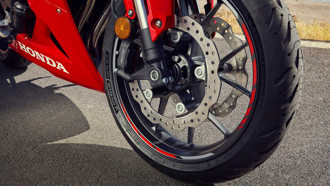 CBR. Három különleges betű, és mögöttük egy gazdag múlt. A Fireblade formavilágára hajazó CBR500R – új festése és grafikája miatt olyan, mintha egyenesen a boxutcából lépett volna elő – ugyanolyan áramvonalas szárnyakat kapott; ezek stabilitást biztosítanak a kanyarok bejáratánál, és villámgyors, nagysebességű agilitást tesznek lehetővé. Az agresszív megjelenésűre tervezett fényszóróktól kezdve, amelyek széles, átható fénysugarat bocsátanak ki a biztonságosabb éjszakai kanyarvétel érdekében, és a gyors haladáshoz készült, burkolaton át egészen a minimalista ülésegységig minden azt sugallja, hogy ez a motorkerékpár új szintet jelent a sportmotorok között.
